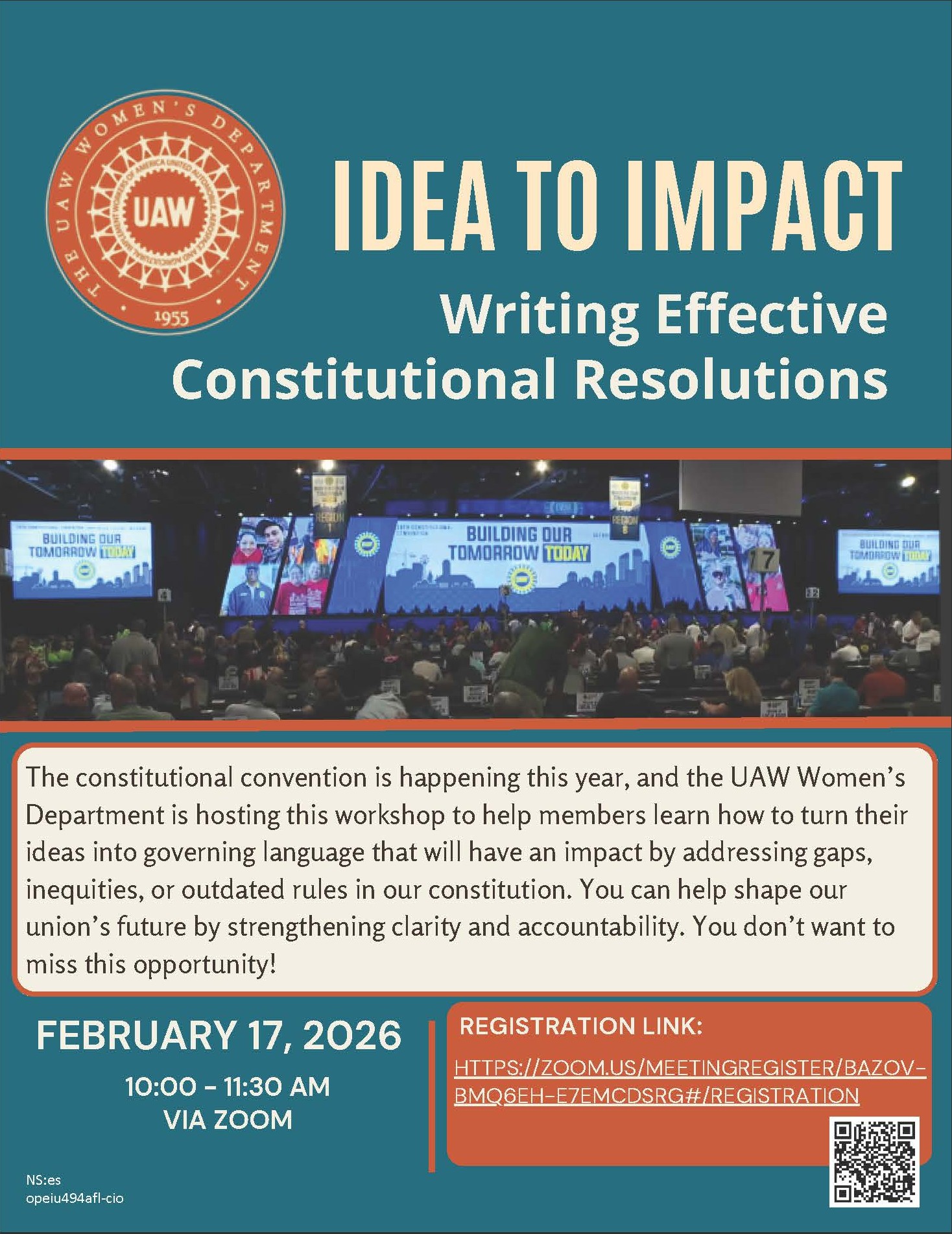 Join the UAW International Women’s Department for a Constitutional Resolution Writing Workshop, a hands-on session designed to help members and delegates learn how to turn ideas and concerns into proposals for constitutional change.