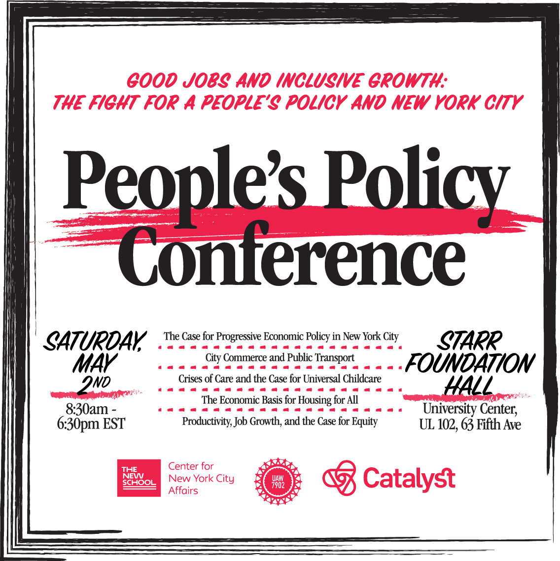 The conference is free with registration. Presented by the Economics Department at The New School for Social Research, with support from Catalyst, The Center for New York City Affairs, UAW Local 7902, and UAW Region 9A.