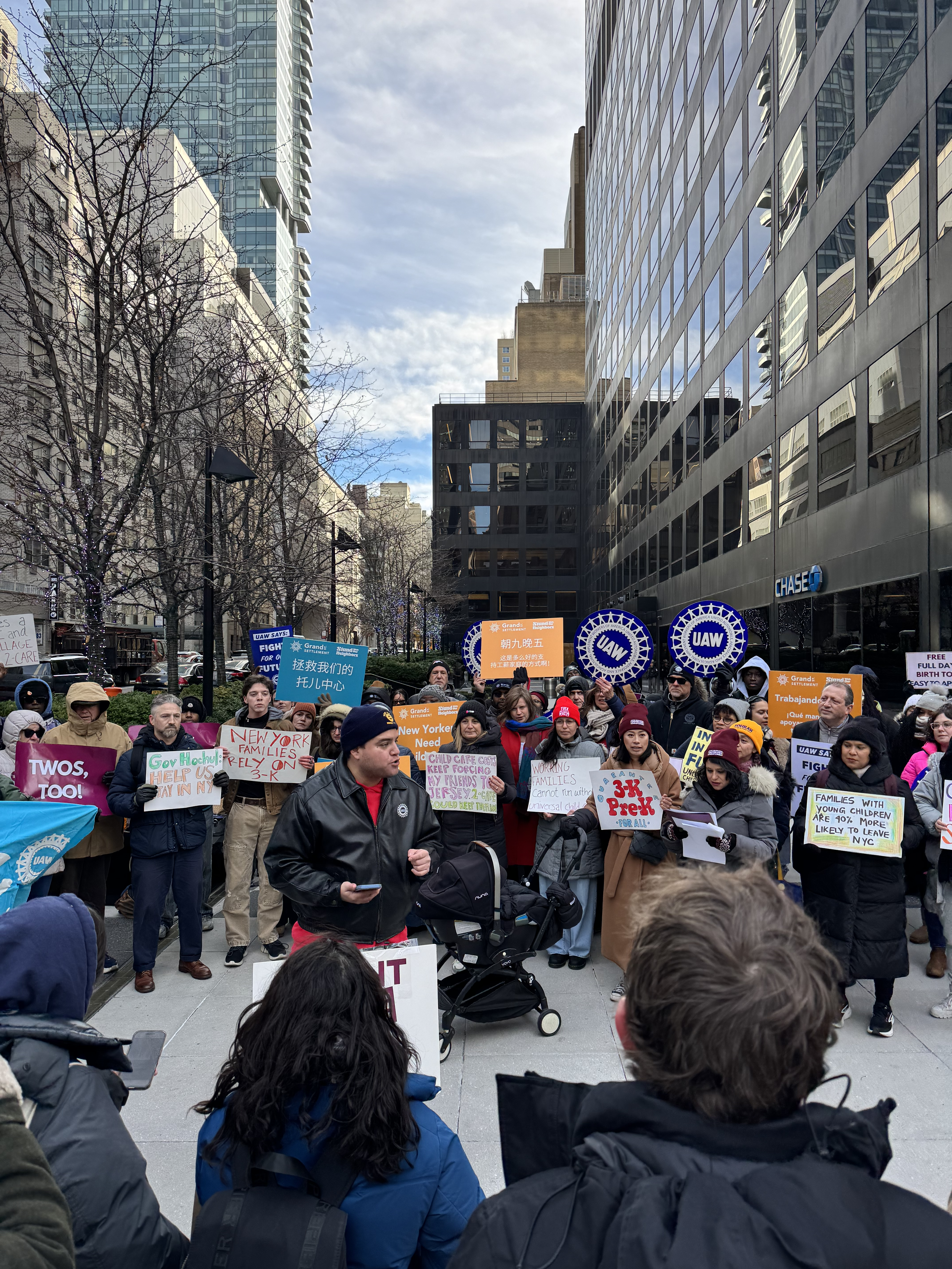Today, over 100 UAW members and our allies rallied outside Governor Hochul's office in Manhattan in support of universal child care for all New Yorkers—following this morning's release of a new report authored with New Yorkers United for Child Care.
